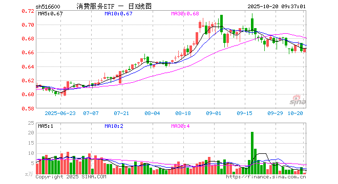 10月20日,消费服务ETF(516600)开盘跌0.15%,报0.660元。消费服务ETF(516600)重仓股方面,恒瑞医药开盘涨1.37%,贵州茅台涨0.00%,药明康德涨1.55%,中国平安涨1.83%,五粮液涨0.23%,招商银行涨0.05%,寒武纪涨2.04%,中国电信涨0.14%,顺丰控股涨0.60%,伊利股份涨0.18%。