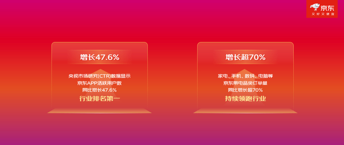 相关数据显示,10月9日至10日,京东APP活跃用户数同比增长47.6%,增速位居行业首位。诸多品类实现销售爆发,截至14日中午12时,家电、手机、数码、电脑等带电品类订单量同比增长超70%,成为推动平台订单增长的核心引擎