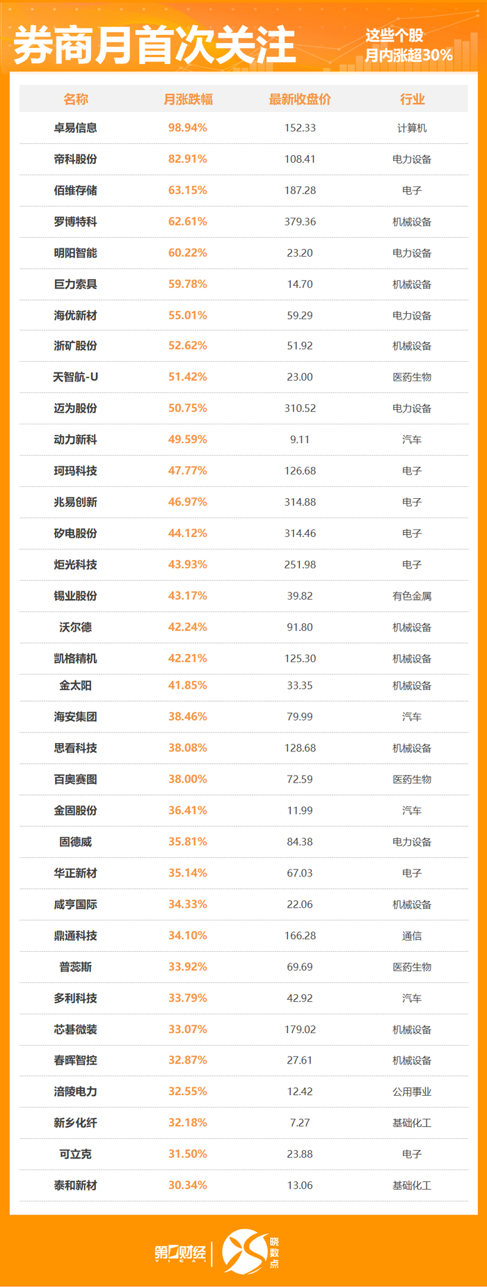 具体来看,涨幅位居第一的是卓易信息,该股1月获国海证券首次关注,给予“增持”评级。