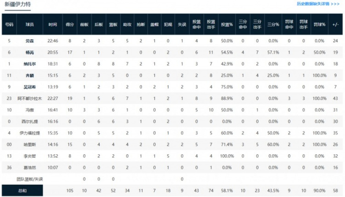 数据统计:沙拉木19分6篮板7助攻,杨芮17分2篮板,哈里斯15分4篮板4助攻2抢断,冯傲10分6篮板,伊福10分5篮板2助攻,劳森8分5篮板5助攻2抢断,李炎哲8分2篮板,吴冠希6分3篮板2助攻2盖帽,齐麟6分5篮板,纳托尔6分8篮板7助攻2抢断,西尔扎提6篮板3助攻,葛浩然2助攻。