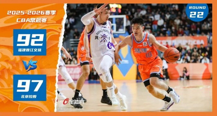 2025-2026赛季CBA联赛常规赛第二十二轮展开较量,福建晋江文旅男篮坐镇主场迎战北京控股男篮。主队虽全场紧咬比分、多次发起强势反扑,却因内线防守受限未能实现逆转,最终以92-97惜败对手。四节比分分别是:23-28,30-27,23-28,16-14(福建晋江文旅男篮在前)。