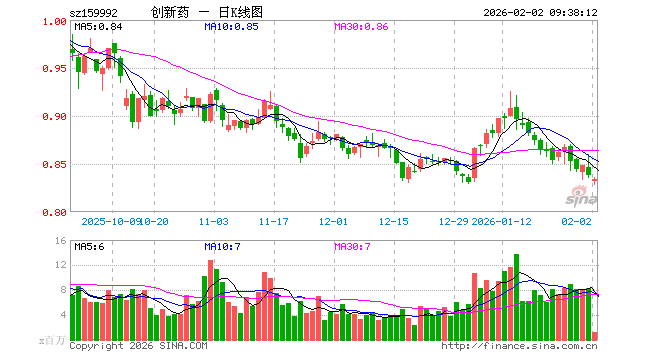 2月2日,创新药ETF(159992)开盘跌0.72%,报0.832元。创新药ETF(159992)重仓股方面,药明康德开盘涨0.01%,恒瑞医药跌0.69%,华东医药跌0.25%,复星医药跌0.52%,科伦药业跌0.29%,百济神州跌0.09%,长春高新跌6.17%,康龙化成跌0.94%,泰格医药跌0.17%,艾力斯跌2.11%。
