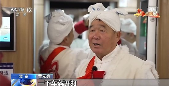 高塞东是腰鼓队的牵头人,他告诉记者,春节期间的演出已经排满了。曹元亮是高塞东的师傅,58岁的他平时已很少上台,但这次听说要去北京演出,又来了精神。