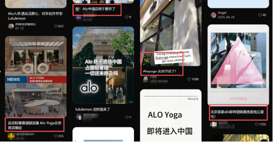 他进一步分析表示,作为一个尚未在中国运营过的国际品牌,Alo必然还需要一段时间进行市场摸底与本地化调研,以调整其产品、营销与运营策略,更好地适应中国消费者。此外,从品牌战略角度看,“人没到声音先到”“犹抱琵琶半遮面”也是一种欧美品牌常见的市场预热方式,持续地放风出来或许也是一种营销策略,为正式开业营造期待感。