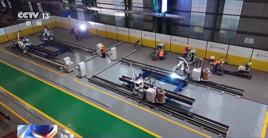 中国二十二冶集团金结分公司研究院副院长 刘泽鲲:前面的激光定位可以精确识别到我们焊缝的位置,它可以进行自动纠偏和校核。生产效率大概提高了三到五倍,我们整个产线它实际上只需要八个人就可以。