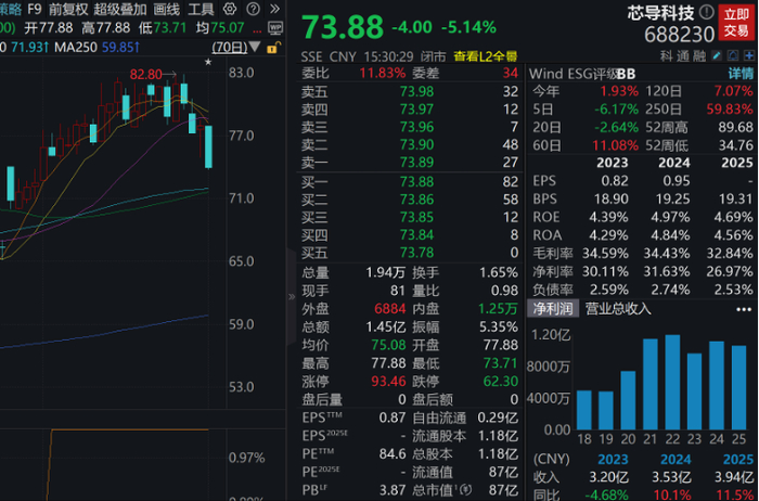 2月2日晚间,芯导科技发布沪市首份2025年年度报告。根据年报,公司2025年实现营业收入3.94亿元,同比增长11.52%;归母净利润1.06亿元,同比下降4.91%;扣非净利润6888.64万元,同比增长17.54%。