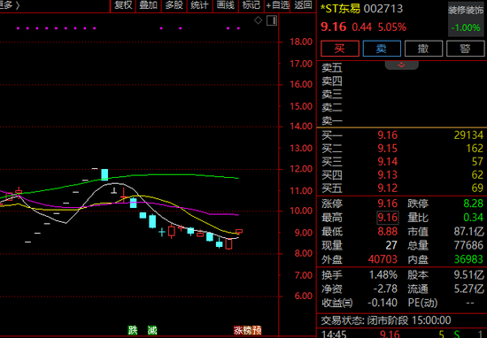 1月30日股价录得涨停板后,2月2日*ST东易(002713)实现连续第二个交易日再度涨停。