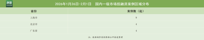 21创投不完全统计1月26日—2月1日,报告日期内国内一级市场发生融资事件24起。其中,有19笔融资披露了融资金额和币种信息,总规模约合人民币77.56亿元人民币。
