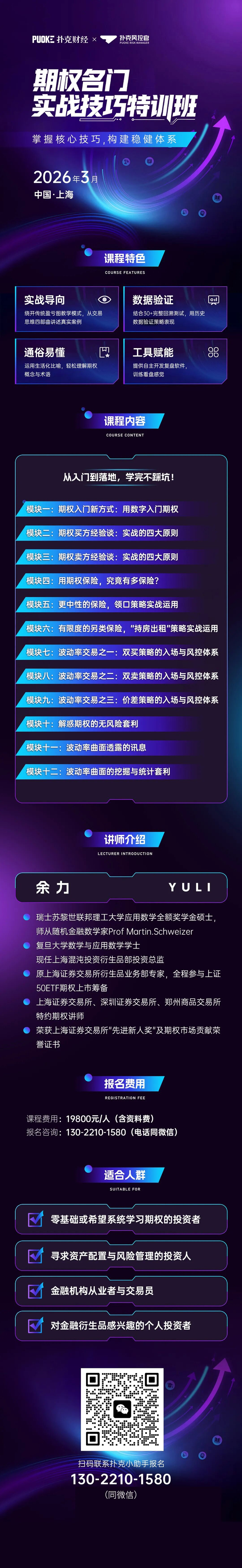 随着金融衍生品市场的快速发展,期权作为一种重要的风险管理与投资工具,正受到越来越多投资者的关注。为帮助投资者系统掌握期权交易的核心策略与实战技巧,扑克财经特推出“期权名门实战技巧特训班”,由资深衍生品投资专家余力亲自授课,结合大量实盘案例与回溯测试,助力学员构建稳健盈利的交易体系。