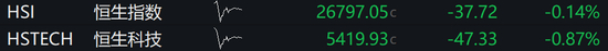 恒生指数低开0.14%,恒生科技指数跌0.87%。紫金矿业涨逾2%,中国海洋石油涨近2%。科网股多数走低,美团、快手、腾讯控股、携程集团、华虹半导体跌幅靠前。