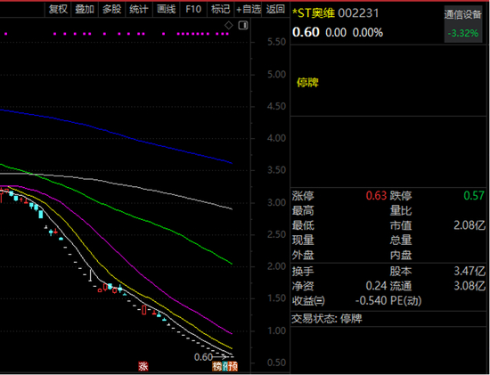 其中,*ST奥维近日发布公告称,2026年1月29日公司股票收盘价为0.60元/股,收盘总市值为2.08亿元,已连续二十个交易日股票收盘总市值均低于5亿元,已触及终止上市的情形。公司已收到终止上市事先告知书,股票日前已停牌,停牌时收盘价0.6元,市值2.08亿元。从股价表现来看,公司今年已录得17个跌停板,累计跌幅超57%。