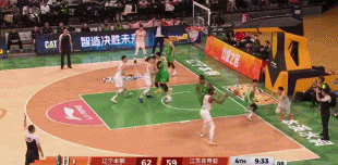 次节上来,亨特转身中路突破助攻贾尔斯打进,庞峥麟妙传李承耀上篮追平比分,对手中投还以颜色,随后依靠造犯规扩大分差,肯帝亚连续内线制造犯规依靠罚球追近比分,亨特中距离翻身跳投再下两分,对手三分回应,斯塔克斯突破高打板命中,随后杀入禁区上下步打进将分差缩小到一分,对手连中两记三分打停肯帝亚,蒋浩然突破上篮得分,双方犯满多次站上罚球线,庞峥麟依靠速度杀入内线助攻贾尔斯空接灌篮,随后命中中距离,随着对手压哨中投打进,半场结束,江苏肯帝亚以38:43暂时落后于辽宁本钢。