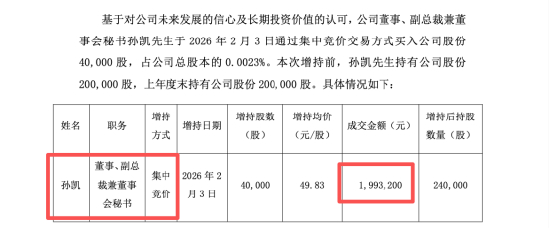 公开资料显示,孙凯早年长期在上市公司体系内从事证券事务与管理工作,曾任内蒙兴发证券部部长、证券事务代表、董事、董事会秘书、副总经理、财务总监,后出任内蒙古兴业集团股份有限公司副总裁。2011年起,孙凯被聘任为公司董事会秘书,至今已在这一岗位上工作十余年。