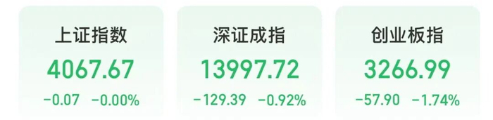 今天上午,A股调整,截至上午收盘,上证指数微跌,接近平盘报收,深证成指下跌0.92%,创业板指下跌1.74%。